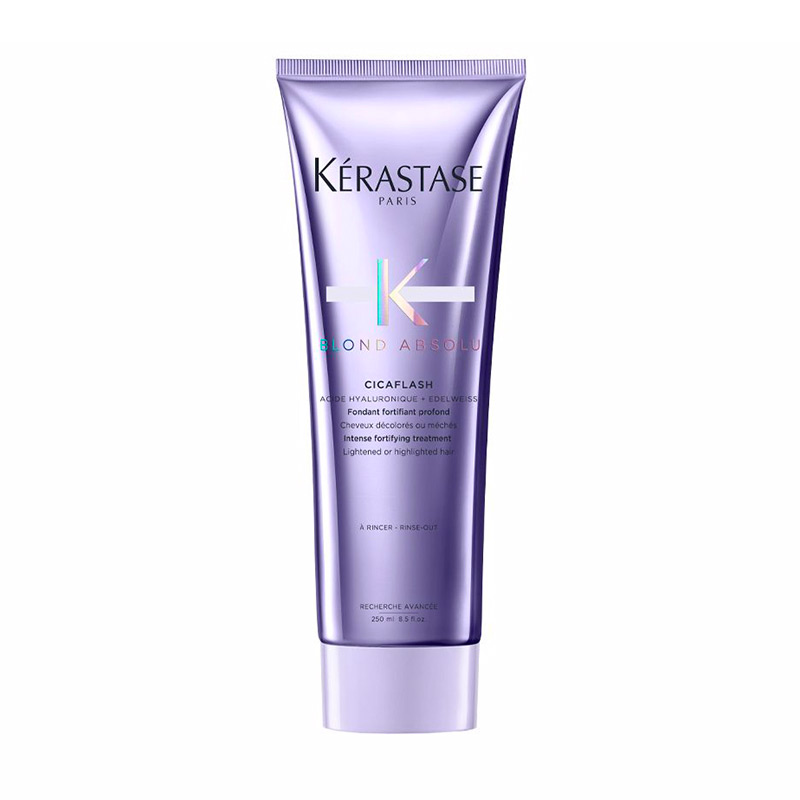 Protégez vos cheveux contre la casse grâce à Cicaflash Blond Absolu de Kérastase. Cet après-shampoing aide à réparer les cheveux décolorés ou méchés qui ont été fragilisés à la suite d'agressions diverses (décolorations, produits de soin inadaptés ou irritants, brushings…). La crème de soin Cicaflash réunit deux ingrédients phare pour lutter durablement contre la fragilisation de la fibre capillaire. L'acide hyaluronique ultra-concentré permet de combler les lésions qui abîment le cheveu et le rendent plus sensible. Il renforce et lisse la fibre en profondeur pour prévenir la casse. La fleur d'edelweiss, plante immortelle et emblématique des montagnes enneigées, aide quant à elle vos cheveux à être plus résistants grâce à ses vertus antioxydantes. Les changements climatiques au fil des saisons ont moins d'impact sur leur santé et leur apparence.